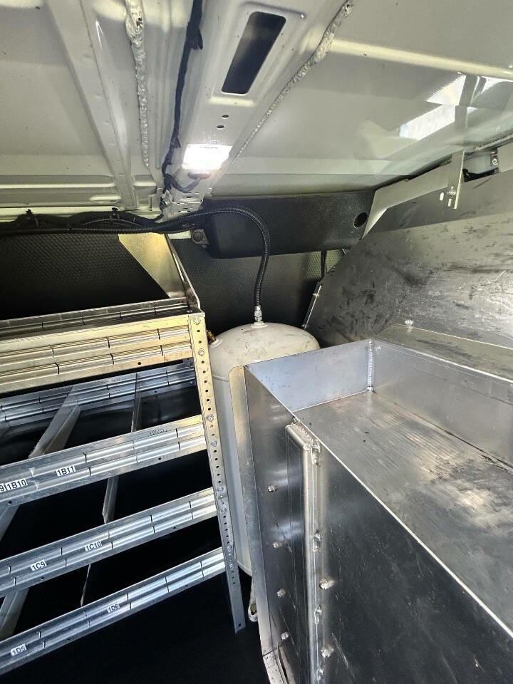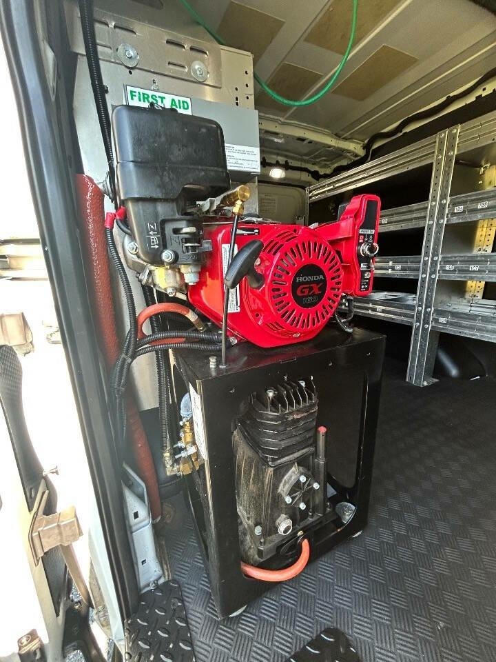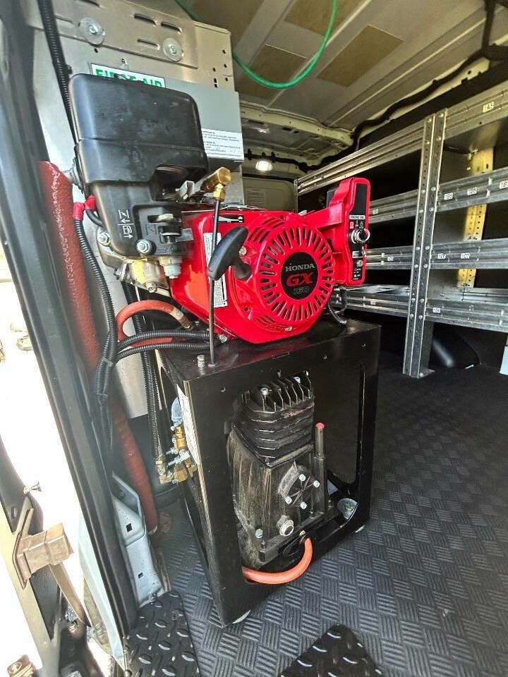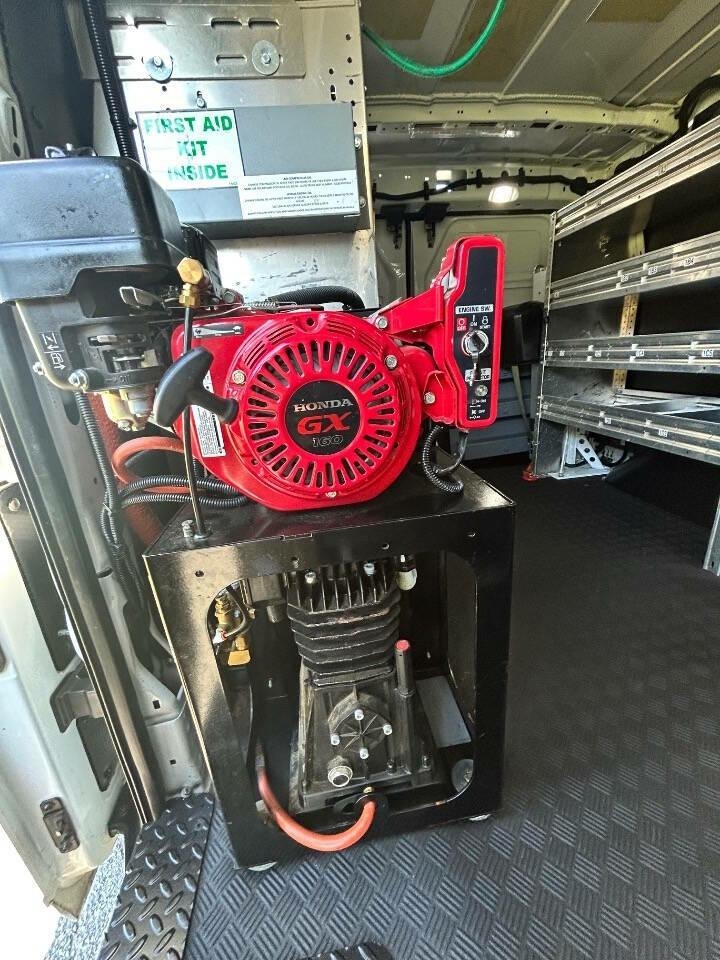 Professional installed inboard Air Compressor, 650 lb lift, retractable Air hose, brand new metal shelves and cabinets . Ready to work Introducing the 2020 Ford Transit 150 - the ultimate commercial vehicle for all your business needs. This spacious and versatile van is perfect for transporting goods, equipment, and even a large team of employees. With its sleek design and powerful engine, the Ford Transit 150 is ready to take on any job.